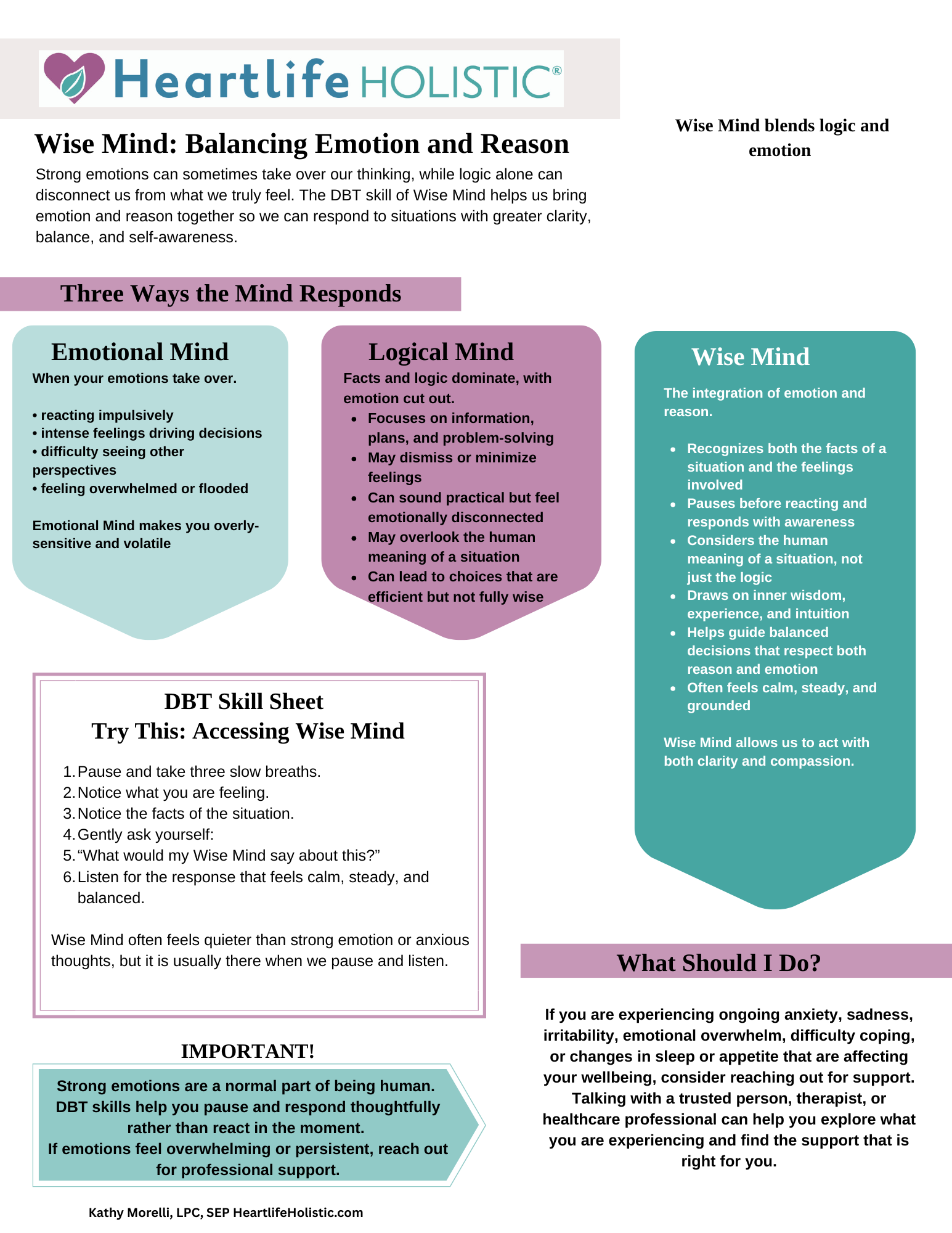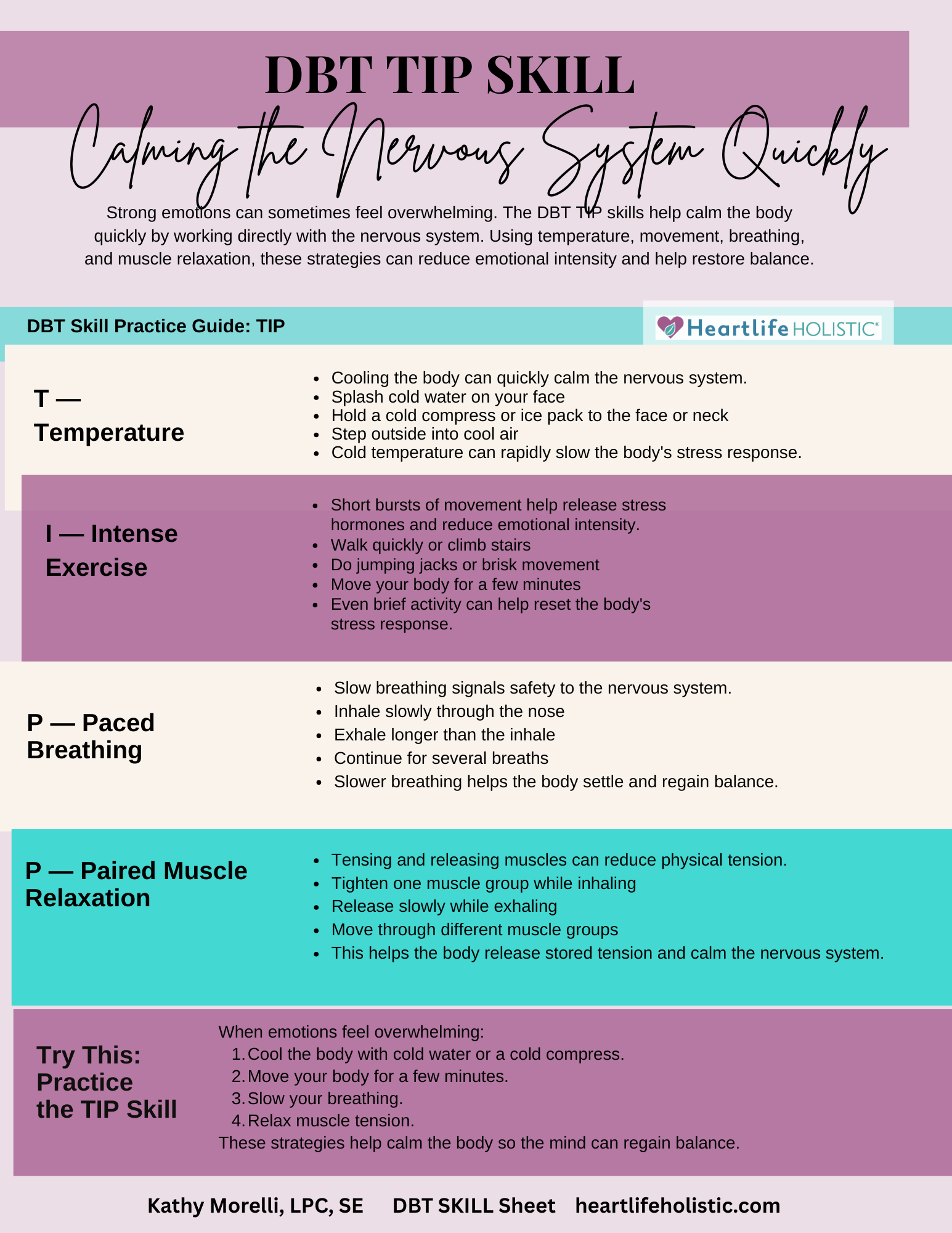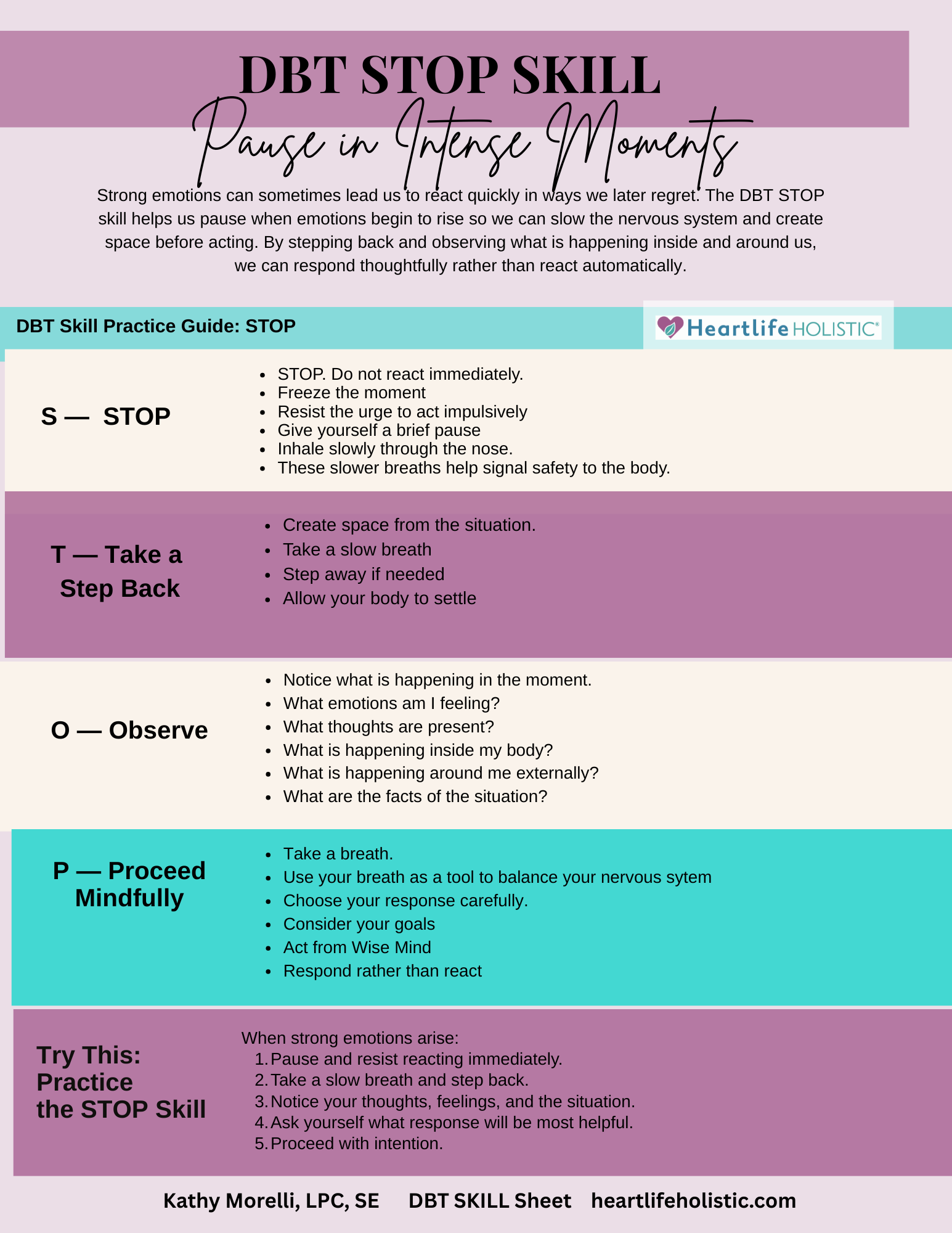 At Heartlife Holistic, DBT is part of our Integrative Mental Health framework, with many skills adapted to support Perinatal Mental Health and the nervous system awareness, attachment -informed care and mind-body practices,